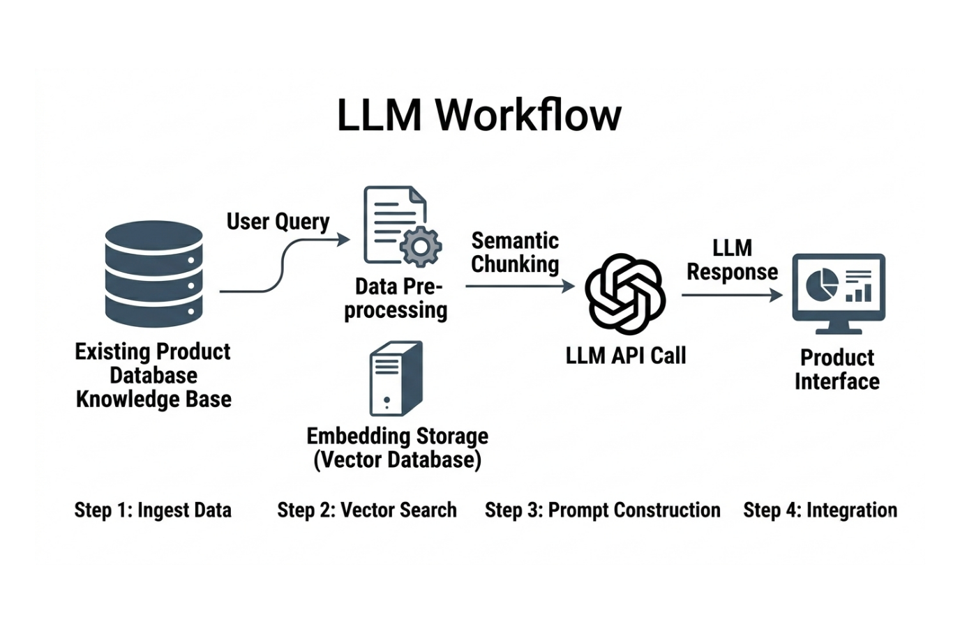 LLM integration services involve connecting large language models like GPT-4, Claude, or open-source alternatives into your product or workflow. This can range from a simple API connection to a sophisticated retrieval-augmented generation (RAG) pipeline, fine-tuned models on your proprietary data, multi-agent orchestration systems, or AI copilots embedded in your existing enterprise software. DeepCraft handles the full stack: model selection, prompt engineering, backend pipelines, security, and frontend UX.